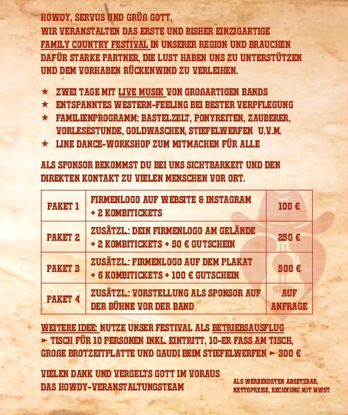 HOWDY - Family Country Festival • 16. - 17. Mai 2026 • Grenzzoigl, 91275 Auerbach
